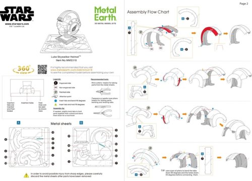 Jednotlivé díly vyjměte z kovových plátků, v případě potřeby použijte malé štípací nůžky (nejsou součástí). Dílky se spojují k sobě pomocí zámků tvořených úchytem (zobáčkem) a otvorem. Zobáček ohněte pomocí malých tenkých kleští (nejsou součástí) a postupně spojte všechny zámky až vznikne velmi realistický mistrovský kousek!