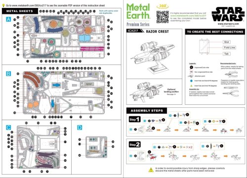 Sada pro vytvoření fascinujícího kovového 3D modelu . Stavba puzzle METAL EARTH vyžaduje trpělivost a šikovné ruce. Výsledek práce však plně vyváží vynaložené úsilí. Miniaturní repliky jsou působivou a poutavou dekorací. Z čtvercových plátků oceli Vám pod rukama vyrostou detailně propracované, fascinující modely. Autentický vzhled 3D puzzle METAL EARTH je dosažen díky detailnímu laserovému gravírování . Nářadí není součástí balení. PRACOVNÍ POSTUP: Jednotlivé díly vyjměte z kovových plátků, v případě potřeby použijte malé štípací nůžky (nejsou součástí). Dílky se spojují k sobě pomocí zámků tvořených úchytem (zobáčkem) a otvorem. Zobáček ohněte pomocí malých tenkých kleští (nejsou součástí) a postupně spojte všechny zámky až vznikne velmi realistický mistrovský kousek! Rozměr složeného puzzle cca 14 x 9,2 x 7,8 cm