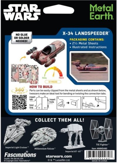 Sada pro vytvoření fascinujícího kovového 3D modelu . Stavba puzzle METAL EARTH vyžaduje trpělivost a šikovné ruce. Výsledek práce však plně vyváží vynaložené úsilí. Miniaturní repliky jsou působivou a poutavou dekorací. Z čtvercových plátků oceli Vám pod rukama vyrostou detailně propracované, fascinující modely. Autentický vzhled 3D puzzle METAL EARTH je dosažen díky detailnímu laserovému gravírování . Nářadí není součástí balení. PRACOVNÍ POSTUP: Jednotlivé díly vyjměte z kovových plátků, v případě potřeby použijte malé štípací nůžky (nejsou součástí). Dílky se spojují k sobě pomocí zámků tvořených úchytem (zobáčkem) a otvorem. Zobáček ohněte pomocí malých tenkých kleští (nejsou součástí) a postupně spojte všechny zámky až vznikne velmi realistický mistrovský kousek!