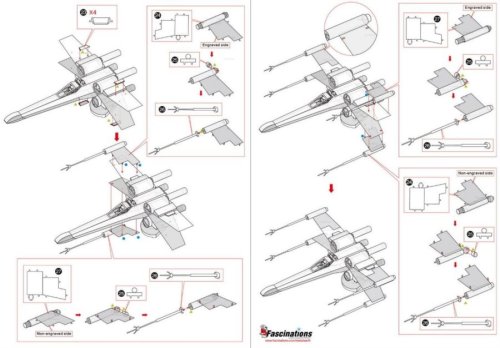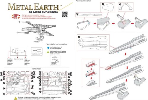 Jednotlivé díly vyjměte z kovových plátků, v případě potřeby použijte malé štípací nůžky (nejsou součástí). Dílky se spojují k sobě pomocí zámků tvořených úchytem (zobáčkem) a otvorem. Zobáček ohněte pomocí malých tenkých kleští (nejsou součástí) a postupně spojte všechny zámky až vznikne velmi realistický mistrovský kousek!