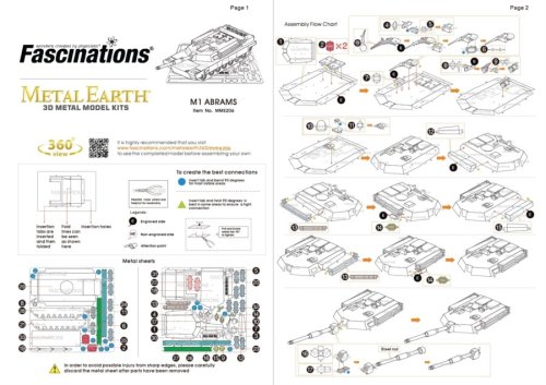 Jednotlivé díly vyjměte z kovových plátků, v případě potřeby použijte malé štípací nůžky (nejsou součástí). Dílky se spojují k sobě pomocí zámků tvořených úchytem (zobáčkem) a otvorem. Zobáček ohněte pomocí malých tenkých kleští (nejsou součástí) a postupně spojte všechny zámky až vznikne velmi realistický mistrovský kousek!