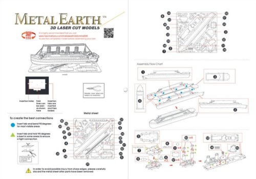 Jednotlivé díly vyjměte z kovových plátků, v případě potřeby použijte malé štípací nůžky (nejsou součástí). Dílky se spojují k sobě pomocí zámků tvořených úchytem (zobáčkem) a otvorem. Zobáček ohněte pomocí malých tenkých kleští (nejsou součástí) a postupně spojte všechny zámky až vznikne velmi realistický mistrovský kousek!
