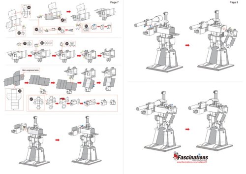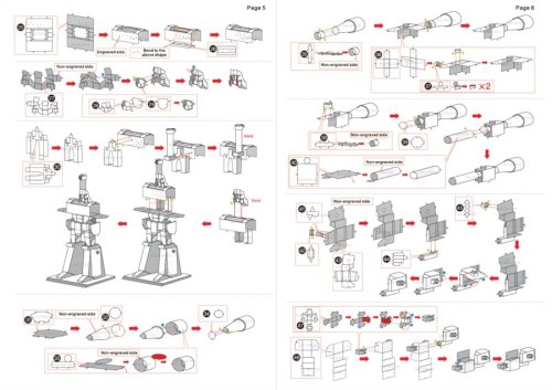 Jednotlivé díly vyjměte z kovových plátků, v případě potřeby použijte malé štípací nůžky (nejsou součástí). Dílky se spojují k sobě pomocí zámků tvořených úchytem (zobáčkem) a otvorem. Zobáček ohněte pomocí malých tenkých kleští (nejsou součástí) a postupně spojte všechny zámky až vznikne velmi realistický mistrovský kousek!
