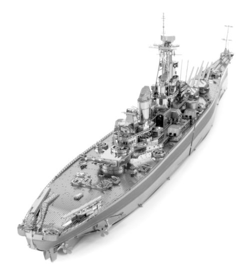 Vzrušující výzva, zážitek při skládání a oslnivý výsledek – to jsou modely METAL EARTH! Model z prémiové řady ICONX v exkluzivním dárkovém balení Vás okouzlí ještě dokonalejším zpracováním detailů! Stavba 3D puzzle METAL EARTH ICONX vyžaduje trpělivost a šikovné ruce. Výsledek práce však plně vyváží vynaložené úsilí! Miniaturní repliky jsou obzvláště působivou a poutavou dekorací nejen doma, ale také v kanceláři či ve škole. Z obdélníkových plátků oceli (21 x 11 cm) s částmi světových monumentů, slavných dopravních prostředků, hudebních nástrojů či zvířat Vám pod rukama vyrostou detailně propracované, fascinující modely. Autentický vzhled 3D puzzle METAL EARTH ICONX je dosažen díky detailnímu laserovému gravírování . Balení obsahuje 3 ocelové plátky, pinzetu a návod na složení. Nářadí není součástí balení. PRACOVNÍ POSTUP: Jednotlivé díly vyjměte z kovových plátků, v případě potřeby použijte malé štípací nůžky (nejsou součástí). Dílky se spojují k sobě pomocí zámků tvořených úchytem (zobáčkem) a otvorem. Zobáček ohněte pomocí malých tenkých kleští (nejsou součástí) a postupně spojte všechny zámky až vznikne velmi realistický mistrovský kousek! Doporučený věk: od 14 let. USS Missouri (BB-63) byla bitevní loď amerického námořnictva, postavená během druhé světové války a sloužící až do doby války v Perském zálivu. Šlo o poslední loď třídy Iowa. Missouri se stala jednou z posledních bitevních lodí postavenou v USA. Na její palubě byla 2. září 1945 podepsána kapitulace Japonska, která ukončila druhou světovou válku. Missouri byla objednána v roce 1940 a dokončena v červnu 1944. Během Války v Tichomoří se účastnila bitev o Iwodžimu a Okinawu, kde ostřelovala japonské ostrovy. Byla také nasazena do bojů během Korejské války v letech 1950 až 1953. V roce 1955 byla vyřazena a převedena do rezerv amerického námořnictva. Během roku 1984 byla modernizována a následně se zúčastnila jako podpůrná loď Války v zálivu. Missouri obdržela celkem 11 hvězd (vyznamenání) za službu ve druhé světové válce, v Koreji a ve válce v Zálivu. Vyřazena byla 31. března 1992, zůstala však v registru amerického námořnictva až do ledna 1995, kdy byla vyškrtnuta ze seznamu. V roce 1998 se za přispění USS Missouri Memorial Association stala muzeem v Pearl Harboru na Havaji. Více na Wikipedii Rozměr složeného puzzle cca 30,5 x 8,3 x 3,8 cm