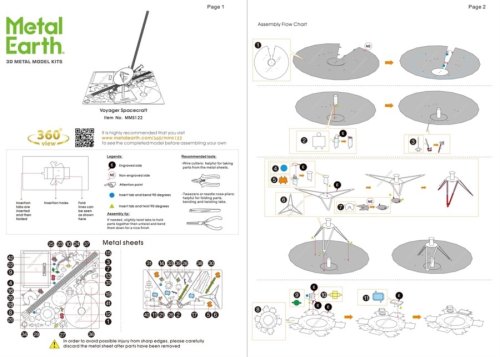 Jednotlivé díly vyjměte z kovových plátků, v případě potřeby použijte malé štípací nůžky (nejsou součástí). Dílky se spojují k sobě pomocí zámků tvořených úchytem (zobáčkem) a otvorem. Zobáček ohněte pomocí malých tenkých kleští (nejsou součástí) a postupně spojte všechny zámky až vznikne velmi realistický mistrovský kousek!