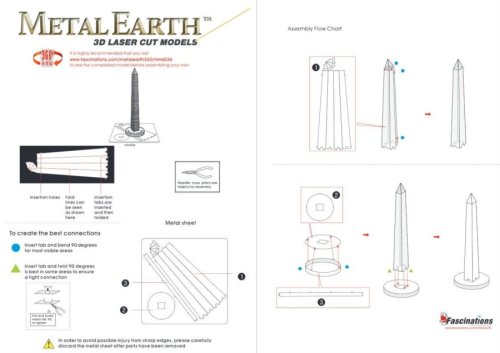 Jednotlivé díly vyjměte z kovových plátků, v případě potřeby použijte malé štípací nůžky (nejsou součástí). Dílky se spojují k sobě pomocí zámků tvořených úchytem (zobáčkem) a otvorem. Zobáček ohněte pomocí malých tenkých kleští (nejsou součástí) a postupně spojte všechny zámky až vznikne velmi realistický mistrovský kousek!