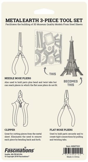 Užitečné pomocníky využijete při skládání 3D ocelových puzzle modelů METAL EARTH, při vyštipování dílků z kovových plátů a při ohýbání malých zobáčků, kterými jsou k sobě jednotlivé dílky připojeny.