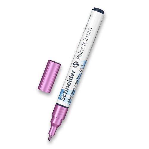 Kreativní popisovač Schneider Paint-It 011 v metalických barvách a jeho inovativní technologie umožňuje čisté a rovnoměrné nanášení barvy.