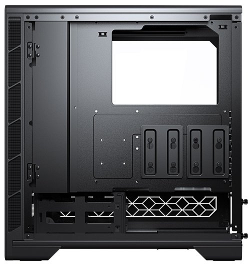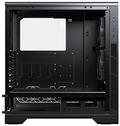 Skříň formátu Middle Tower nabízí dvě 2,5" pozice pro SSD disky a dvě 3,5" pozice pro pevné disky. Na bočním panelu se nachází dva USB 3.0 porty, sluchátkový výstup a audio vstup pro mikrofon. Na přední straně je vybavena dvěma 120 mm ventilátory a umožňuje pohodlné umístění až 280 mm dlouhého výměníku vodního chlazení. RGB podsvícení spolu s průhlednými bočnicemi z tvrzeného skla zajišťuje vytříbený design. Ve skříni je dostatek prostoru pro chladič CPU do výšky až 170 mm a grafickou kartu o délce až 320 mm. Skříň je dodávána bez zdroje. Součástí je také sada prachových filtrů.