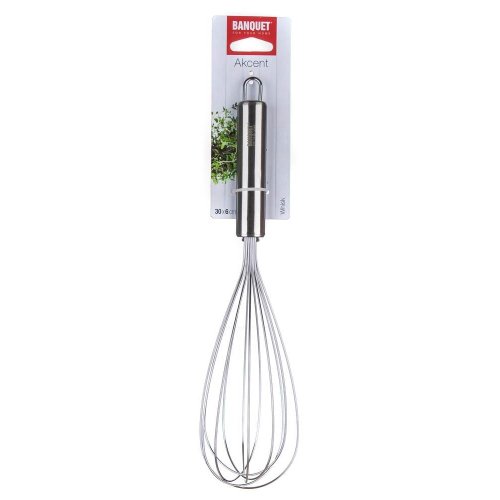 Šlehací metla AKCENT, vyrobená z nerezové oceli, je určena pro profesionální i domácí použití. Metla je opatřena praktickým očkem pro možnost zavěšení, snadno se udržuje a lze mýt v myčce na nádobí. Řada kuchyňského náčiní AKCENT splňuje náročné požadavky profesionálů a je vhodná i pro domácí použití. Jednoduchý funkční design zabezpečuje nadčasovost a dlouhou morální i kvalitativní životnost všech výrobků.