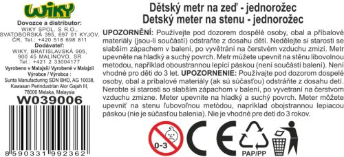 Metr na stěnu jednorožec. Pěnový. Stupnice do 165cm. Metr se poskládá ze 4 dílků jako puzzle. Není lepící.