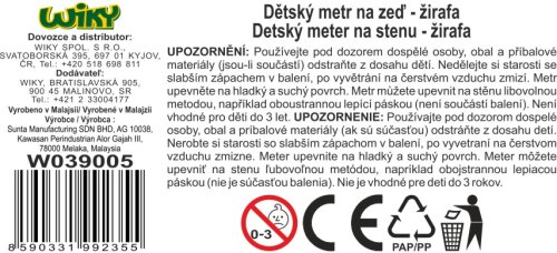Metr na stěnu žirafa. Pěnový. Stupnice do 165cm. Metr se poskládá ze 4 dílků jako puzzle. Není lepící.