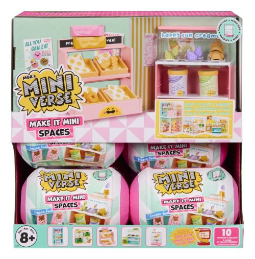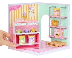 Vdechni život MGA‘s Miniverse Místnostem. Místnosti můžeš s tímto nábytkem upravit tak, aby vyrobené miniatury MGA‘s Miniverse vypadaly co nejlépe. Uvnitř balení najdeš vše potřebné pro vytvoření výstavních skříní, regálů nebo bufetových stolků pro mini jídla a nápoje. Každý set je laděný do jiného stylu a obsahuje „ingredience“, které odpovídají tématu nábytku. Můžeš rozbalit moderní vitrínu, retro polici nebo roztomilý pultík.