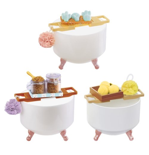 Mini hračky...VELKÁ překvapení! Udělej to! Vystav to! Rozbal rozkošné pomůcky pro zdraví a krásu ve formě mini replik. Jsou tak miniaturní, ale i přesto s neuvěřitelně realistickými a funkčními detaily! V každém balení je dost ingrediencí na výrobu různých koulí s pěnou do koupele, scrubů, mýdel nebo solí do koupele. Vše je krásně navoněné a skutečně funkční. Obal vypadá jako malá vana.