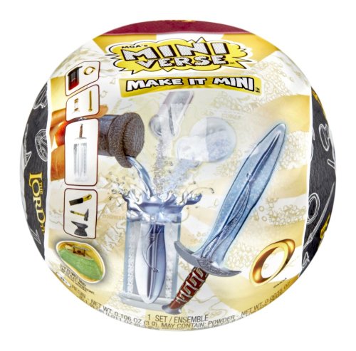 Mini hračky…VELKÁ překvapení! Udělej to! Vystav to! MGA‘s Miniverse se spojilo s Warner Brothers a společně přináší zbraně a předměty z Pána prstenů ve formě mini replik. Miniaturní, ale i přesto s neuvěřitelně realistickými detaily! Vyrobíš je z ingrediencí ve tvém balíčku, pak vše necháš alespoň 5 minut na přímém slunci vytvrdnout nebo na ně zasvítíš UV lampičkou a můžeš vystavovat! V sérii najdeš 15 mini replik, z nichž 3 jsou vzácné.