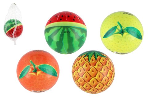 Měkký míč v designu ovoce se skvěle hodí na hraní na zahradě, na pláži nebo třeba na hřišti. Průměr míče je 11 cm. Vhodný pro děti od 10 měsíců. Čtyři druhy ovoce - meloun, citrón, ananas nebo pomeranč. Míče jsou velmi oblíbenou hračkou každého dítěte.