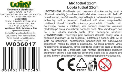 Míč nafukovací - fotbal. Velikost 22 cm. 2 varianty - červená, zelená.