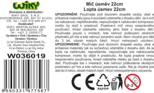 Míč gumový nenafouknutý úsměv 22 cm. 6variant.