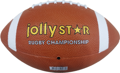 Gumový ragbyový míč. Rozměr nafouklého míče: cca 28 x 16 x 16 cm (dle nahuštění).