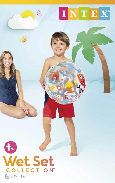 Nafukovací míč s motivem mořského světa. Míč o průměru 51 centimetrů je vyroben z kvalitního vinylu, který je odolný vůči mechanickému poškození. Rozměry balení 17 x 30 x 2 cm. Vhodné pro děti od 3 let.