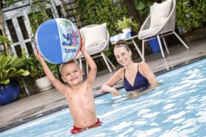 Díky své velikosti a lehkosti je míč snadno přenosný a ideální pro různé hry ve vodě, například v bazénu nebo na pláži, stejně jako pro zábavu na zahradě. Světle žlutý ventil umožňuje rychlé nafouknutí i vyfouknutí míče, což usnadňuje přípravu hračky k použití i její skladování. Míč je vhodný pro děti od 2 let, což je uvedeno rovněž na obalu.