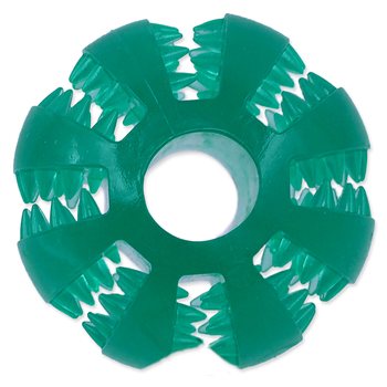 Dentální hračka pro psy. Speciální drážky pomáhají proti tvorbě zubního kamene a masírují dásně. Zvyšují u psa zájem o hračku, neboť kousání je pro něj příjemné.