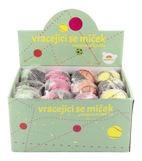 Vracející se míček je ideální hračkou pro zabavení. Míček je přivázaný na tkaničce, díky které vám míček nikdy neuletí. Můžete si s ním házet o zeď nebo o zem. Balonek ve čtyřech různých vzhledech podle druhu sportu, baleno v sáčku. Rozměry výrobku 6 x 6 x 6 cm. Vhodné pro děti od 3 let.