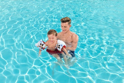 Kvalitní dětské nafukovací rukávky Bestway jsou vhodnou výbavou při výuce plavání. Pomáhají udržet ramena dítěte nad vodou a zvyšují tak nejen jeho bezpečnost při plavání, ale i při různých hrách ve vodě. Rukávky jsou vyrobeny z kvalitního a odolného vinylu, jsou lehké a netlačí. Mají bezpečnostní ventily a 2 vzduchové komory. Barevné provedení s motivy Disney je vhodné pro kluky i holky. Při plavání a hraní ve vodě si děti zlepšují fyzickou kondici a držení těla. Používejte pouze pod dohledem d