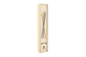 Celý svazek tyčinek se zarovná, sevře jednou z dlaní a pak se náhle z ruky uvolní na stolní desku či jinou podložku. Tyčinky dopadnou na stůl a soupeři pak vytahují z hromádky jednu za druhou. Špatné rozhození je možné 2x zopakovat. Pokud při vytahování dojde k pohnutí kterékoliv jiné tyčinky, ve hře pokračuje soupeř. Po získání tyčinky zvané Mandarin či Mikádo (černá nebo zelená) si jí lze při uvolňování ostatních pomáhat. Hra končí po rozebrání všech tyčinek. Vyhraje ten ze soupeřů, kterému se podaří nasbírat tyčinky s největším bodovým součtem. Dřevěná krabička obsahuje 41 ks dřevěných tyčinek. Rozměr tyčinky: 25 cm Rozměr krabičky: 5 x 27 x 3 cm. Vhodné pro děti od 3 let.