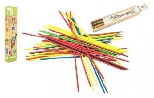 Celý svazek tyčinek se zarovná, sevře jednou z dlaní a pak se náhle z ruky uvolní na stolní desku či jinou podložku. Tyčinky dopadnou na stůl a soupeři pak vytahují z hromádky jednu za druhou. Špatné rozhození je možné 2x zopakovat. Pokud při vytahování dojde k pohnutí kterékoliv jiné tyčinky, ve hře pokračuje soupeř. Po získání tyčinky zvané Mandarin či Mikádo (černá nebo zelená) si jí lze při uvolňování ostatních pomáhat. Hra končí po rozebrání všech tyčinek. Vyhraje ten ze soupeřů, kterému se podaří nasbírat tyčinky s největším bodovým součtem. Dřevěná krabička obsahuje 41 ks dřevěných tyčinek.