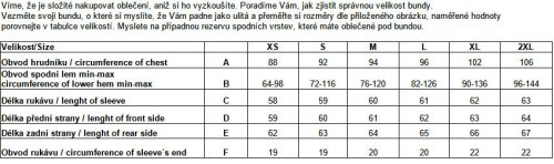 Mikina se zateplenými prošívanými paneky chránícími hrudník a ledviny před prochladnutím.