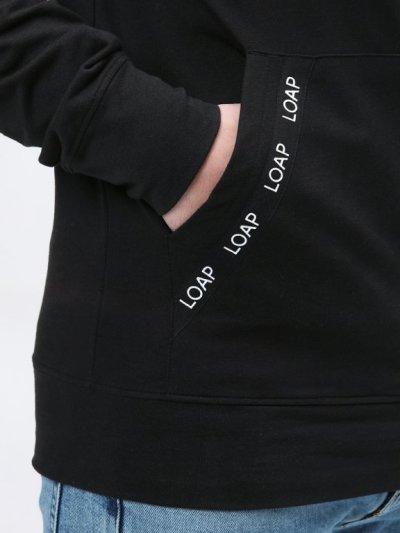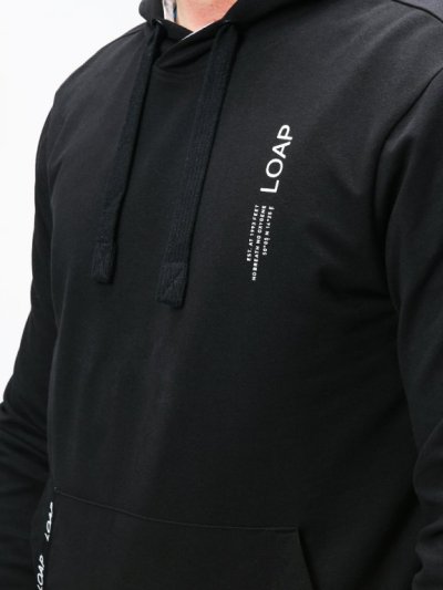 Hlavní složkou materiálu je bavlna doplněná o elastanovou složku. Mikina je tak příjemná na těle, lehce pruží, zároveň se méně mačká. Pocit pohodlí ještě více umocňuje podšívka z bavlny a viskózy. Střih mikiny je klasický. Kapuce je vybavena tkanými plochými tkaničkami, narozdíl od spodního okraje a rukávů ji tak lze stáhnout. V přední části má mikina dvě vnější kapsy spojené do “klokanky”. Slušivý vzhled podtrhuje jemné logo na hrudi a páska s nápisy Loap našitá na kapse.