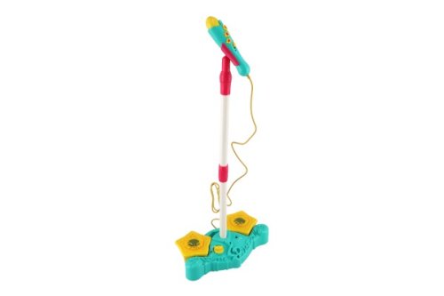 Skvělá zábava pro malé muzikanty. Tento úžasný plastový mikrofon umožní malým muzikantům uspořádat vlastní koncert. Možnost nastavení hlasitosti. Mikrofon se zvukem a světlem. Budete se cítít jako popová hvězda. Skvělý pódiový mikrofon s funkcemi. Možnost nastavení výšky mikrofonu podle výšky dítěte. Baterie 4 x AA nejsou součástí balení. Sestavení: 1.) sestavení tripodu (podstavce): zasuňte stabilizační tyčky do podstavce 2.) nasaďte stetoskopickou tyč (tyč, která drží mikrofon) na podstavec 3.) nastave výšku, kterou potřebujete 4.) připevněte mikrofon Nastavitelná výška mikrofonu je 78 - 110 cm. Kabel pro připojení MP3/mobilního telefonu není součástí balení. Rozměry balení 38 x 26 x 8 cm. Vhodné pro děti od 3 let.