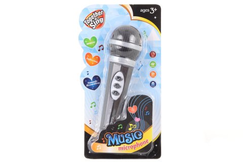 Plastový mikrofon na baterie hraje různé melodie . Napájení 3x AAA baterie - nejsou součástí. Rozměr balení cca 25 x 13 x 5,5 cm. Věk 3+