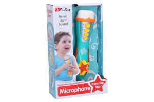 Mikrofon s efekty. Velikost 19x6x6cm. baterie 3xAAA nejsou součástí. nastavení hlasitosti, tlačítka: melodie, bicí, potlesk a stop.