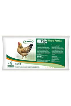Minerální krmivo pro nosnice,husy a krůty ve snášce, je určeno k doplnění krmných dávek. zajišťuje optimální hladiny makroprvků a stopových prvků nezbytných pro výživu dané kategorie zvířatpůsobí příznivě na zlepšení a udržení zdravotního stavu zvířat a jejich reprodukční schopnostinapomáhá k zvyšování užitkovostizlepšuje příjem a využití krmivapřidává se do krmné dávky složené z jádra a statkových krmiv důkladným zamícháním. Analytické složky:vápník 34 %, fosfor 3 %, sodík 1 %Doplňkové látky:vápník (Ca) 340g/kg, fosfor (P) 30g/kg, sodík (Na) 10g/kg, měď (Cu) 100mg/kg, železo (Fe) 1250mg/kg,zinek (Zn) 600mg/kg, mangan (Mn) 700mg/kg, kobalt (Co) 1mg/kg, jód (I) 3,3 mg/kg, selen (Se) 1 mg/kg Krmný návod:Mikros Minerál se používá denně, rovnoměrně zamíchaný do krmné dávky, složené z jádra a statkových krmiv.V období snášky se doporučuje přidávat vápenný grit nebo jiný zdroj vápníku. 1 polévková lžíce obsahuje cca 30 g. Dávkování:slepice ve snášce: 70 - 100 g na 10 kusů/denchovné kachny, husy ve snášce: 90 g na 10 kusů/den