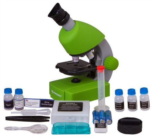 Barevný dětský mikroskop Bresser Junior 40x-640x je určený malým biologům. Je opatřen dvoupolohovým okulárem a LED osvětlením s nastavitelným jasem a proto je jeho používání snadné a intuitivní. Kapka vody, sněhové vločky, listy pokojových rostlin, kuchyňská sůl, černý pepř, jogurt z chladničky, stará měděná mince a další všední věci se tak ukážou ve zcela jiném světle. Rozsah zvětšení 40x až 640x potěší všechny zvídavé děti při zkoumání minimalistických předmětů.
