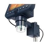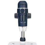 Mikroskop je namontován na profesionálním stojanu, který má stolek s měřicí stupnicí a svorky. Je napájen z vestavěné baterie, kterou lze nabíjet pomocí kabelu USB.