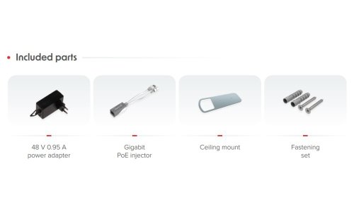 Napájení: DC 48 V adaptér nebo PoE/PoE+ 802.3af/at (18–57 V)