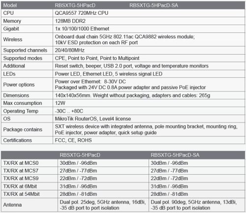 - RouterBoard s integrovaným 802.11ac modulem ve vodotěsném UV odolném boxu s integrovanou sektorovou MIMO anténou o zisku 13dBi a vyzařovacím úhlu 90°.