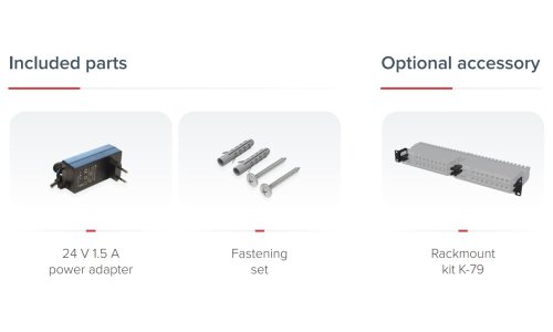 Procesor i přepínací čip jsou umístěny na spodní straně desky - takže kovový kryt funguje jako pasivní chladič. Díky svým kompaktním rozměrům lze do jednoho 1U slotu namontovat 4 tyto routery (Rackmount kit K-79, samostatný produkt).