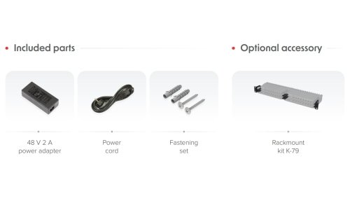 Procesor i přepínací čip jsou umístěny na spodní straně desky - takže kovový kryt funguje jako pasivní chladič. Díky svým kompaktním rozměrům lze do jednoho 1U slotu namontovat 4 tyto routery (Rackmount kit K-79, samostatný produkt).