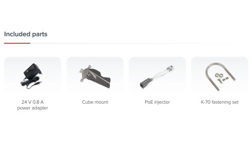 Součástí jednotek je předinstalovaná licence RouterOS MikroTik L3. Tato licence je plně dostačující pro vytvoření spoje point to point (bod-bod). Jednotky mají integrovaný PoE splitter, lze je tedy napájet přímo po F/UTP kabelu (PoE+ 802.3af/at).