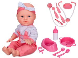 Miminko 30 cm tvrdé tělo čurající na baterie se zvukem a doplňky