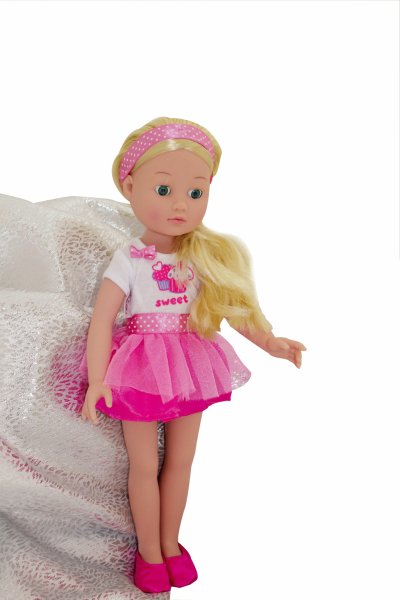35 cm veliká panenka Bambolina je celá z vinylu. Má krásné blonďaté vlásky.