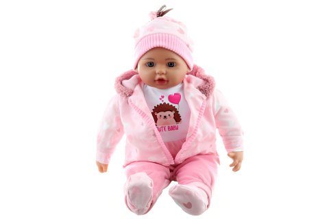 Miminko - holčička v krásném oblečení s motivem ježečka a srdíček. Miminko má měkké tělíčko, hlavičku a části končetin z tvrdšího plastu. Velikost miminka cca 50 cm. Baleno v sáčku. Věk 3+