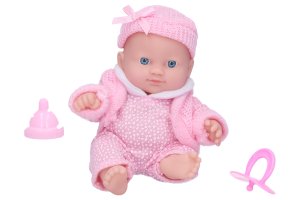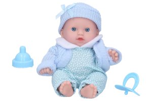 V balení najdeš miminko v krásném kompletu s čepičkou, dudlík i flaštičku.