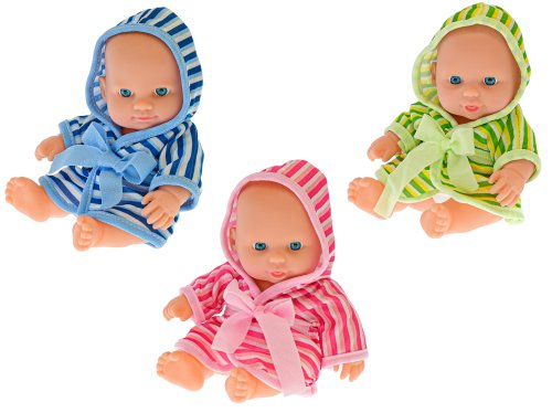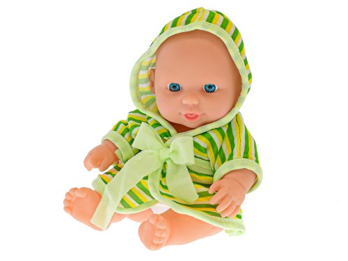 Roztomilé mimiko s tvrdým tělíčkem v pruhovaném županu potěší každou malou maminku. Miminko má velikost 20 cm. Dostupné je ve třech barvách - modrá, zelená a růžová. Vhodné pro děti od 3 let.