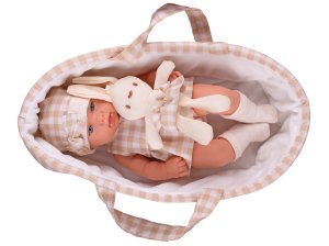 Miminko tvrdé tělo 33 cm s nosítkem pro miminka a zajíčkem
