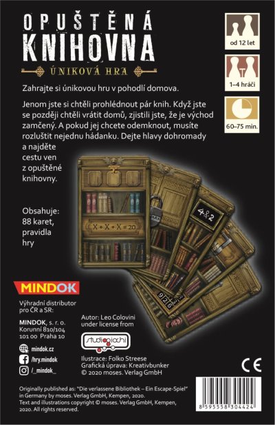 Zahrajte si únikovou hru v pohodlí domova. Jenom jste si chtěli prohlédnout pár knih. Když jste se později chtěli vrátit domů, zjistili jste, že je východ zamčený. A pokud jej chcete odemknout, musíte rozluštit nejednu hádanku. Dejte hlavy dohromady a najděte cestu ven z opuštěné knihovny. Hra obsahuje: